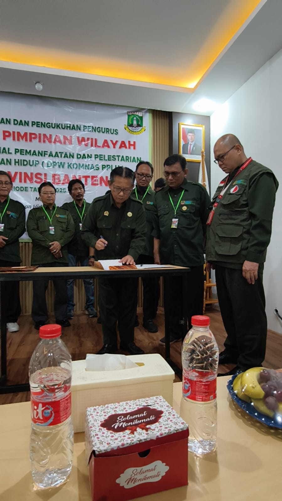 Banten, komnaspplh.org, Pengurus Dewan Pimpinan Wilayah Komite Nasional Pemanfaatan dan Pelestarian Lingkungan Hidup (DPW KOMNAS PPLH) Provinsi Banten resmi dilantik, prosesi pelantikan dilakukan oleh Ketua Umum KOMNAS PPLH Drs. Odi Junaedi SR, M.Si dan pembacaan SK oleh Sekretaris Jenderal KOMNAS PPLH Aji Tarmuji, ST., SH di gedung Candi Academy, Grand Boulevard Business Distric Bl ok VIA/205 Kelurahan Ciakar Panongan Tangerang Banten pada minggu (28/12/2025). Dalam sambutannya Ketua DPW KOMNAS PPLH provinsi Banten Bambang Sutiktiyono, MPd., MM menyampaikan “sudah banyak musibah yang luar biasa, banjir dimana mana, penambangan liar dimana mana, pencemaran…