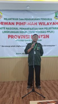 Drs. Odi Junaedi SR, M.Si selaku Ketua Umum KOMNAS PPLH menyampaikan dengan mengutif salah satu ayat dari Alquran Surat Ar-Rum ayat 41 yang artinya “Telah nampak kerusakan di darat dan di laut disebabkan karena perbuatan tangan manusia, supaya Allah merasakan kepada mereka sebahagian dari (akibat) perbuatan mereka, agar mereka kembali (ke jalan yang benar)”, telah terjadi banjir bandang karena ulah manusia, telah terjadi penumpukan sampah juga oleh tangan manusia, kemudian setelah saudara saudara dilantik, saudara sudah syah sebagai pengurus DPW KOMNAS PPLH provinsi Banten, sudah punya dasar untuk bekerja, untuk datang mengunjungi industri industri, tambang yang ada di provinsi Banten, kita di Banten memiliki tiga gunung, gunung asepan, gunung Karang dan gunung Pulosari yang perlu kita jaga dari kelongsoran, untuk tidak ada penebangan pohon pohon, tidak ada penambangan di lereng lereng gunung karena sekarang ini gunumg karang sudah ditambang pasirnya, di gunung karang sudah terjadi longsor, kita memiliki sungai ciujung dan cisadane, dulu air sungai dapat dimanfaatkan masyarakat untuk diambil airnya sebelun terjadi pencemaran, sekarang masyarakat sudah tidak berani, tugas DPW sebagai mana seperti satgas sungai citarum, harus punya keberanian untuk menutup bahkan dengan menembok dengan cor seperti yang dilakukan Pangdam V Siliwangi, nah kita juga bisa melakukan kerja sama dengan Danrem Banten untuk bagaimana sungai sungai selamat dari limbah perusahaan”. Tegas Odi Junaedi.